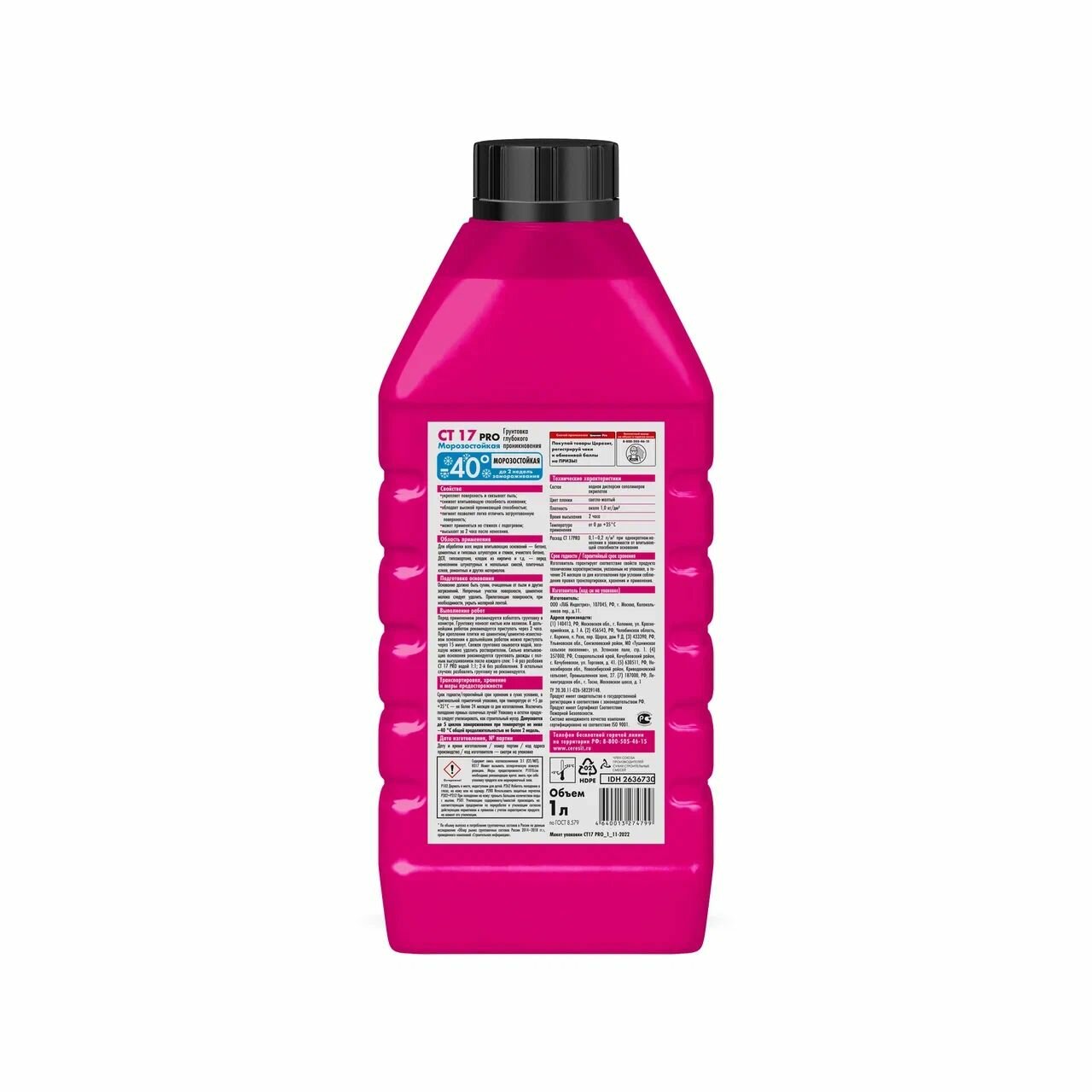 Грунт для внутренних и наружных работ глубокого проникновения Ceresit СТ 17 Pro морозостойкая 1 л.