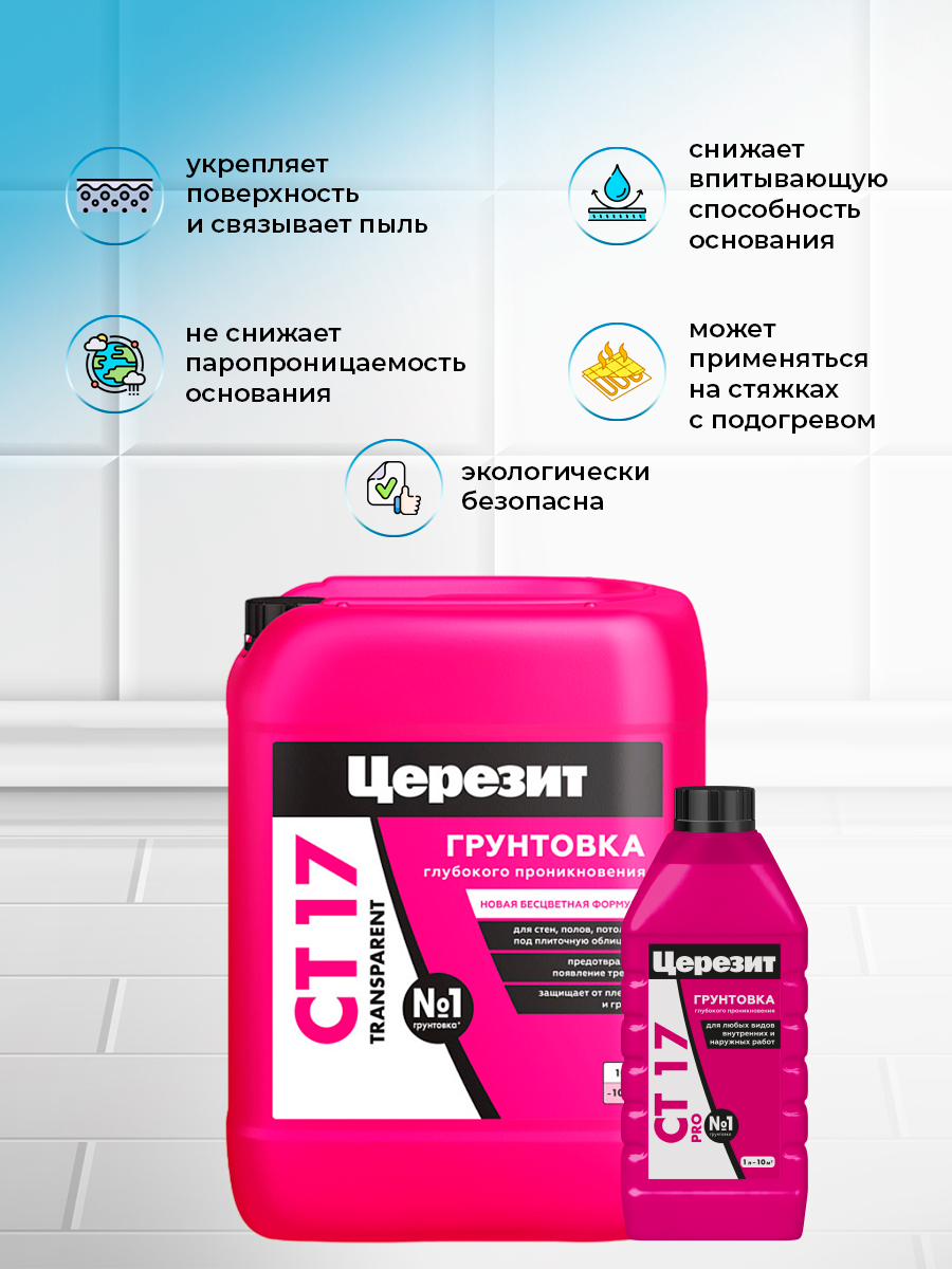 Ниже Вы можете прочитать отзывы на Грунтовка глубокого проникновения Церезит (Ceresit) CT 17 PRO, зима, 1 л, ознакомится с подробными характеристиками, посмотреть интересные обзоры и фотографии на Грунтовка глубокого проникновения Церезит (Ceresit) CT 17 PRO, зима, 1 л.