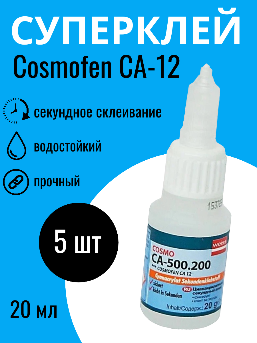 Секундный клей COSMOFEN CA 12 20G COSMO CA-500.200 20гр, 5 штук.