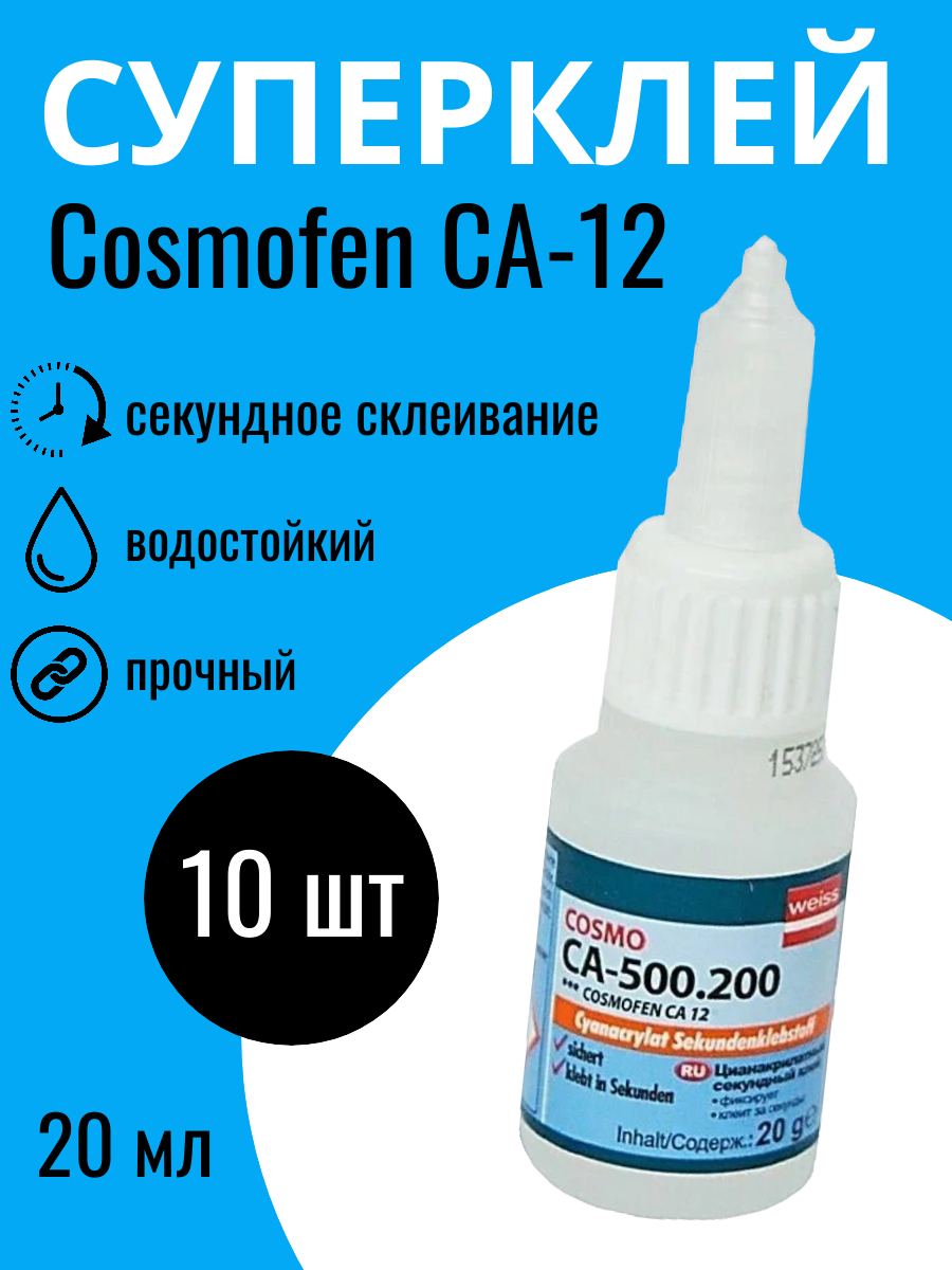 Суперклей Cosmofen CA 12 20 гр, для пластика, для дерева, для ткани, для стекла, 20 шт.