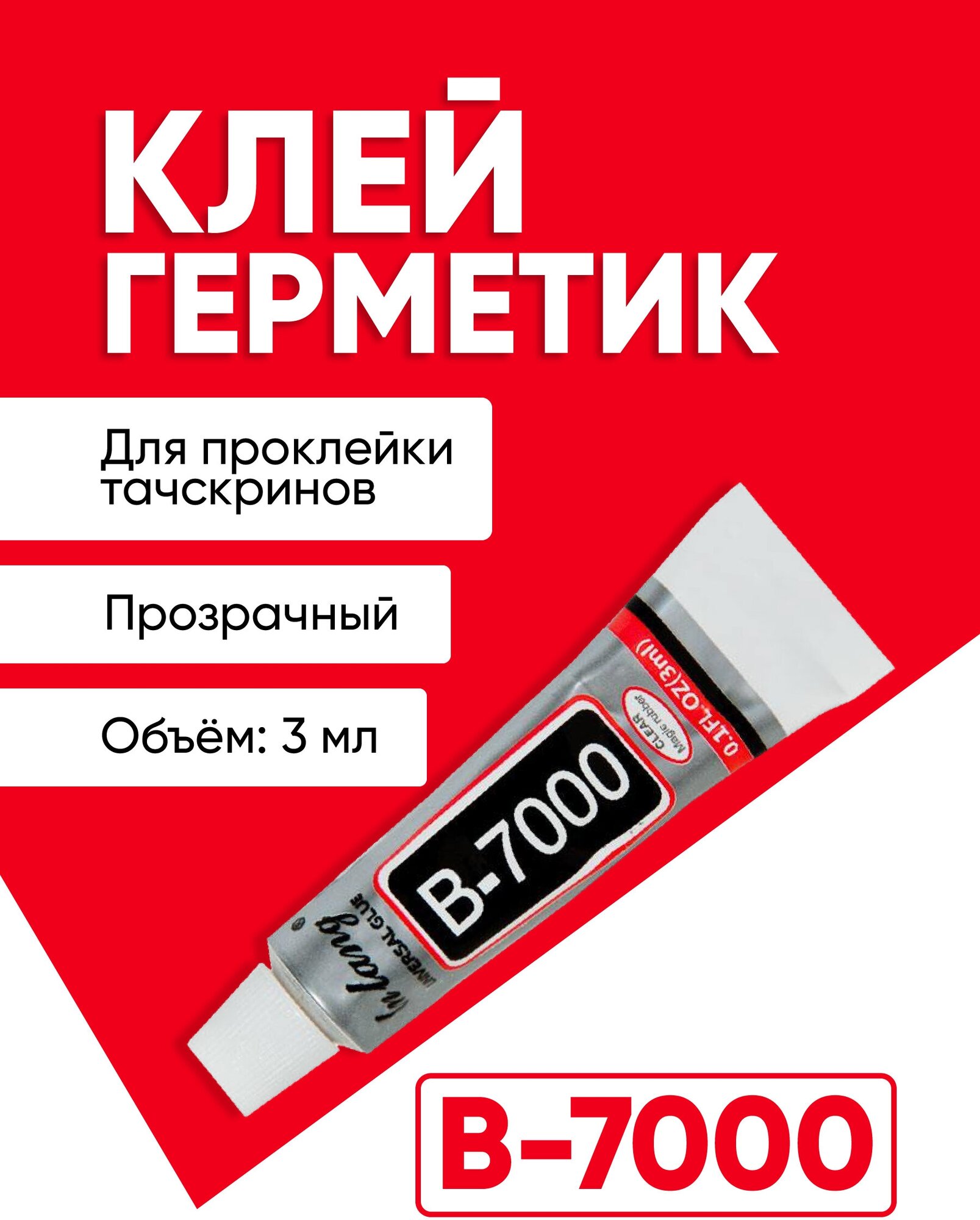 Клей герметик для проклейки тачскринов B-7000, прозрачный, 3 мл