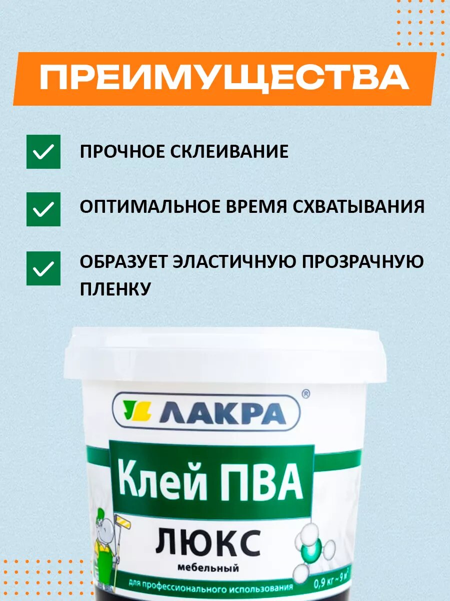 Купить Лакра Клей ПВА мебельный Люкс 0,9кг 90002427712