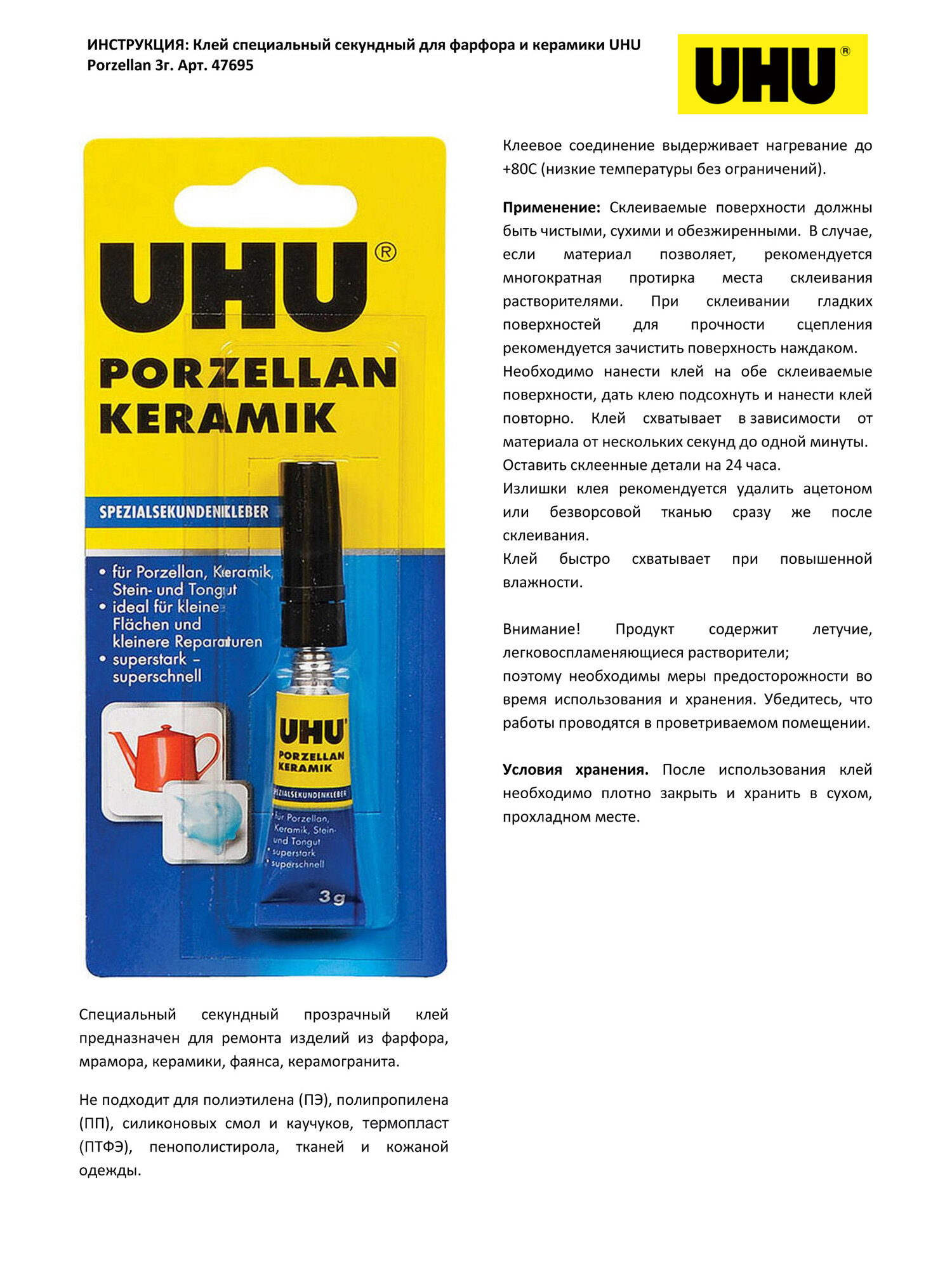 47695 Клей для фарфора/керамики секундный 3г в блистере UHU интересное: