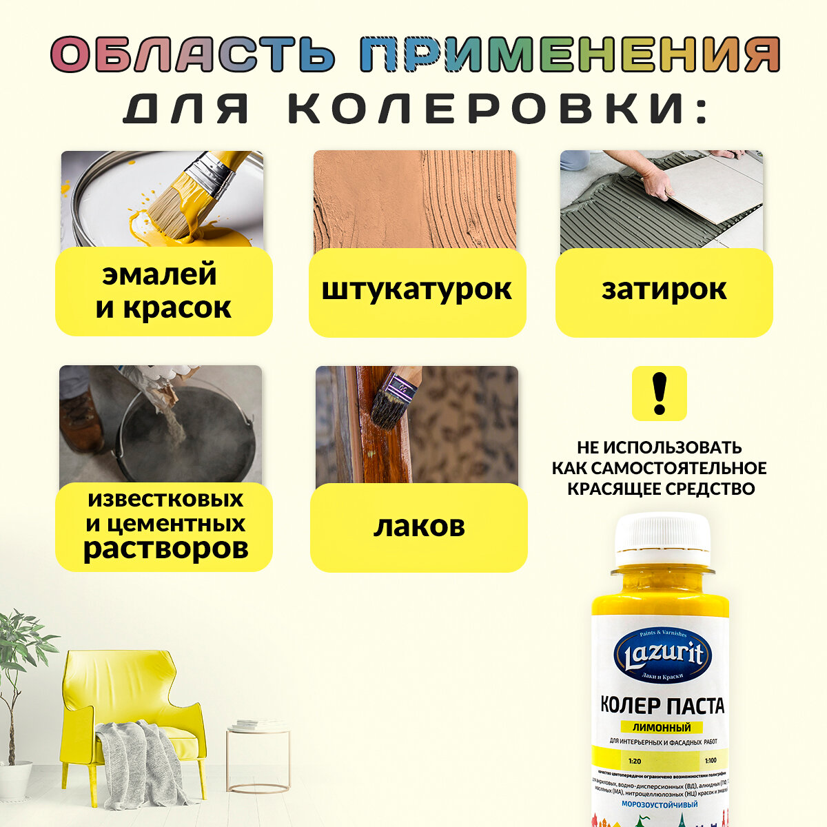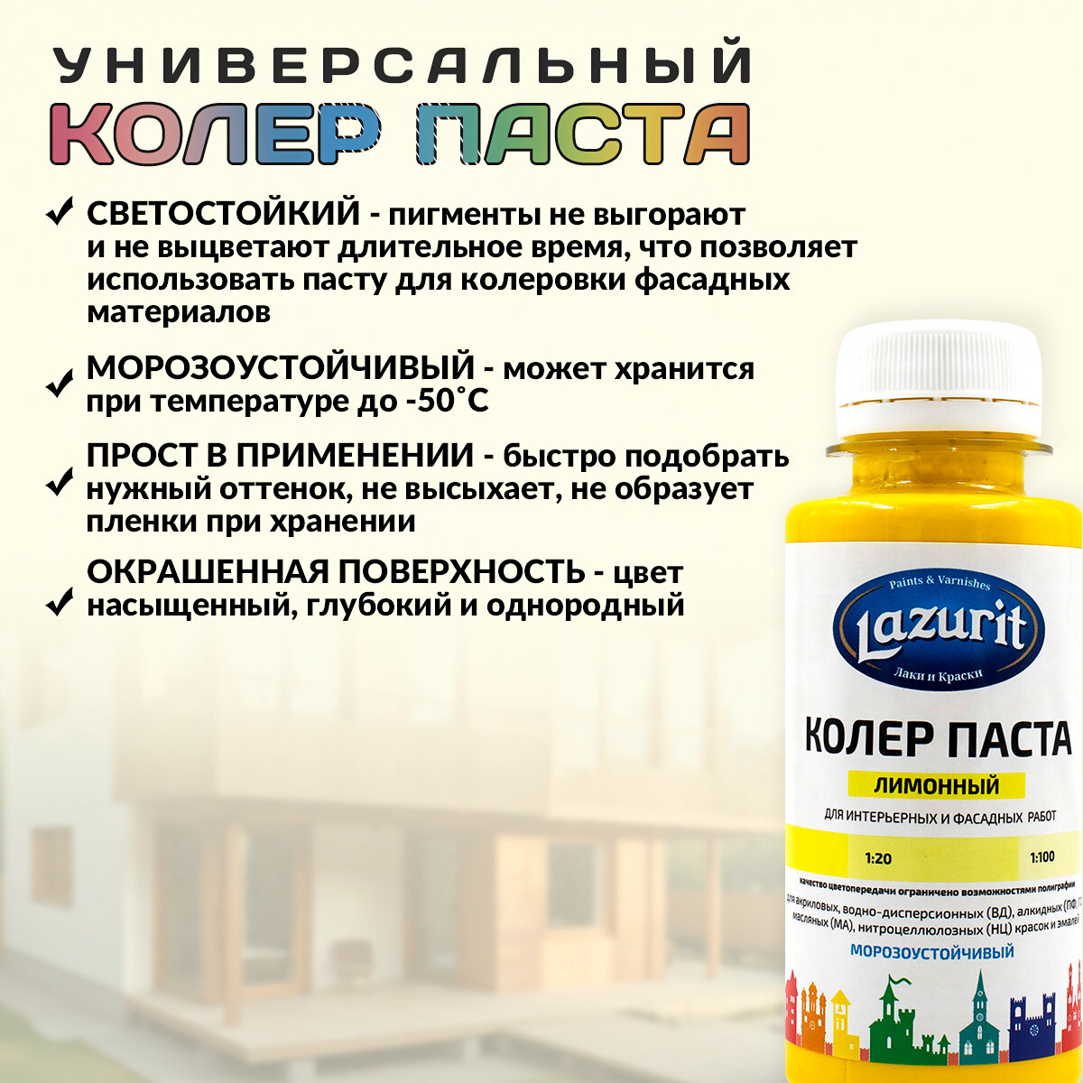 Колер-паста LAZURIT лимонный 100 мл/1шт
