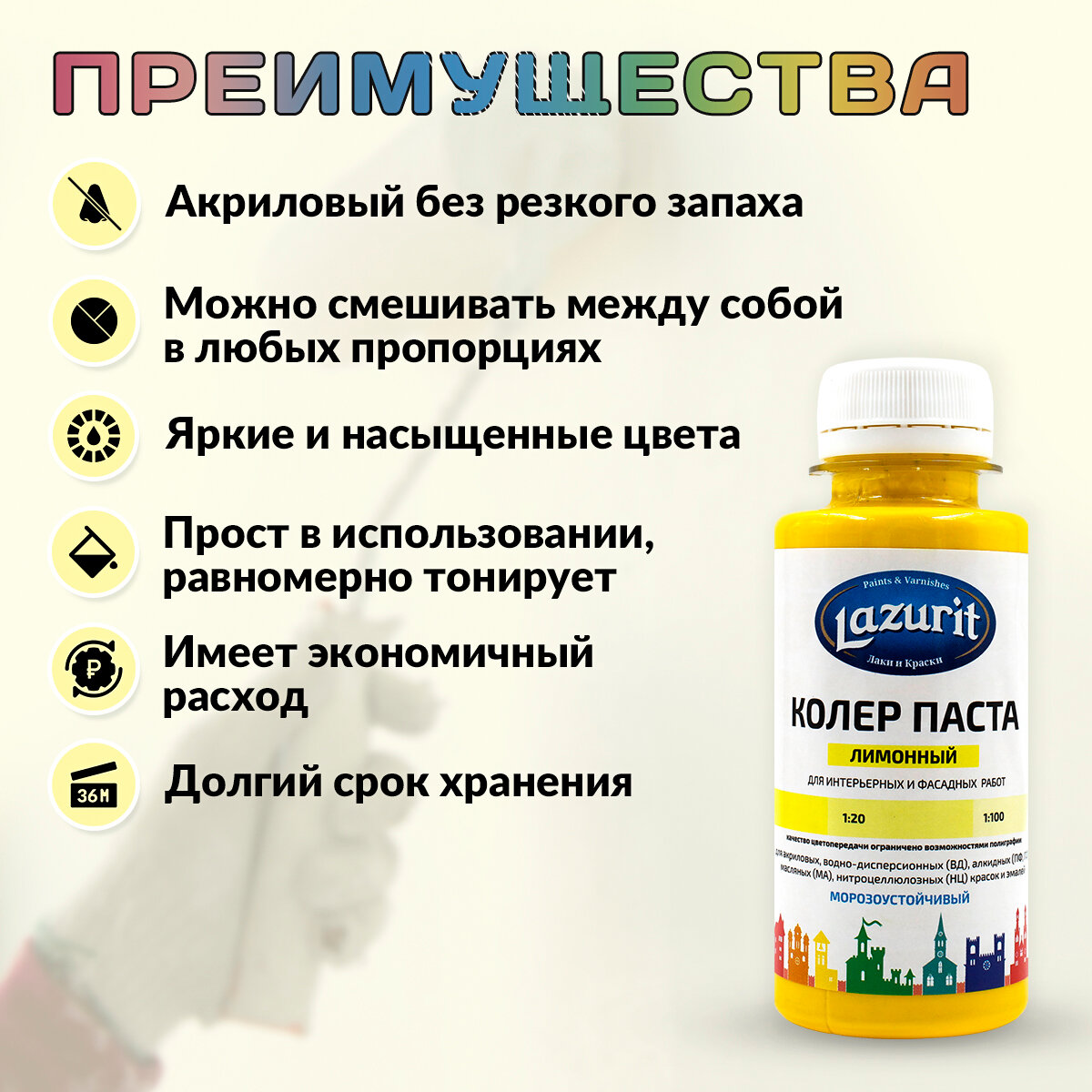 Ниже Вы можете прочитать отзывы на Колер универсальный (100мл) № 1 лимонный «Lazurit», ознакомится с подробными характеристиками, посмотреть интересные обзоры и фотографии на Колер универсальный (100мл) № 1 лимонный «Lazurit».