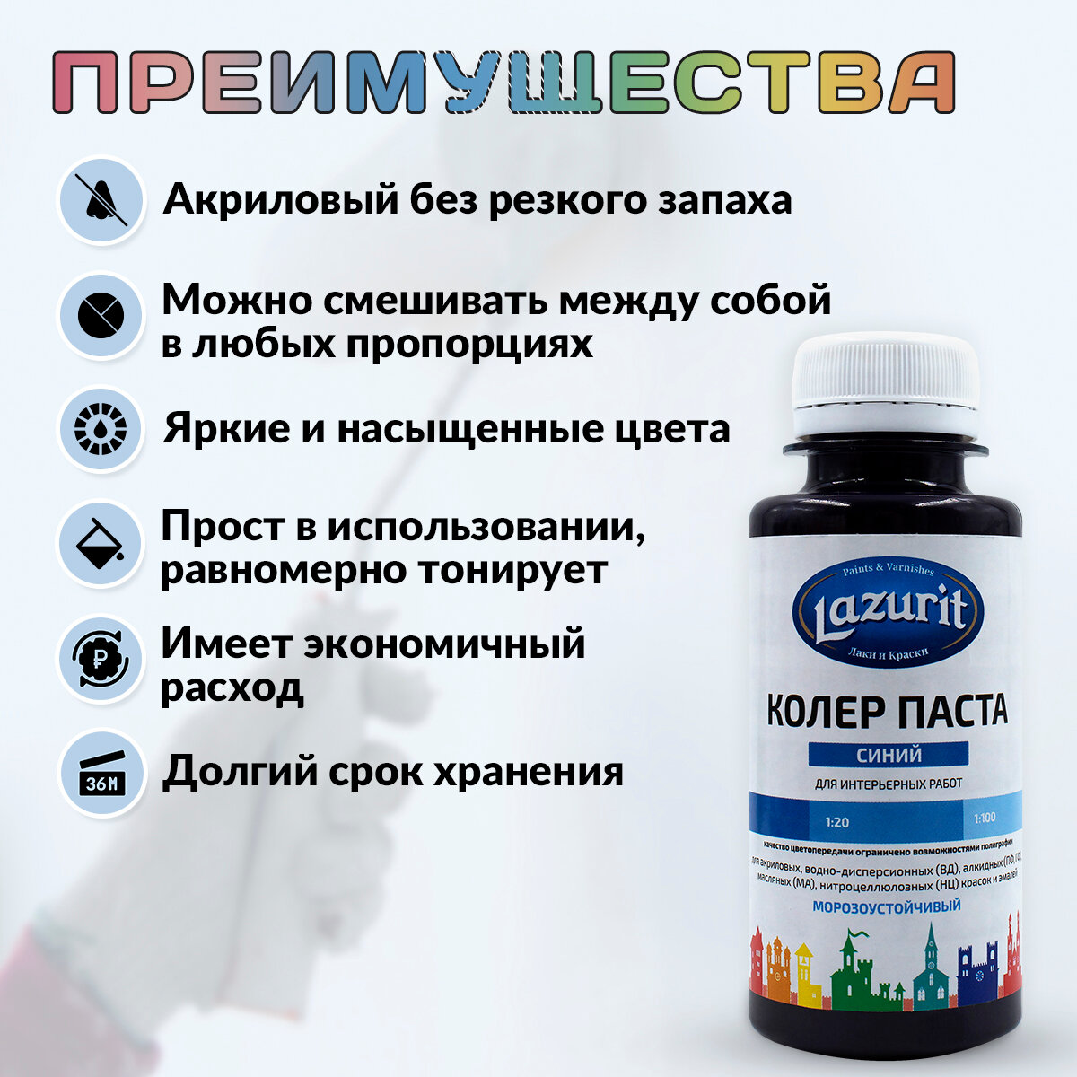 Колер-паста LAZURIT голубой 100 мл/1шт