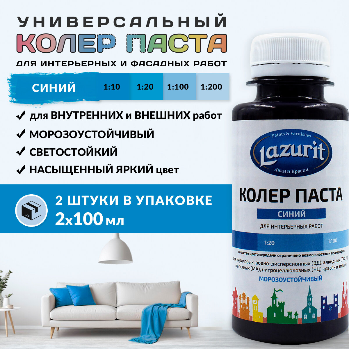 Колер-паста LAZURIT голубой 100 мл/2шт