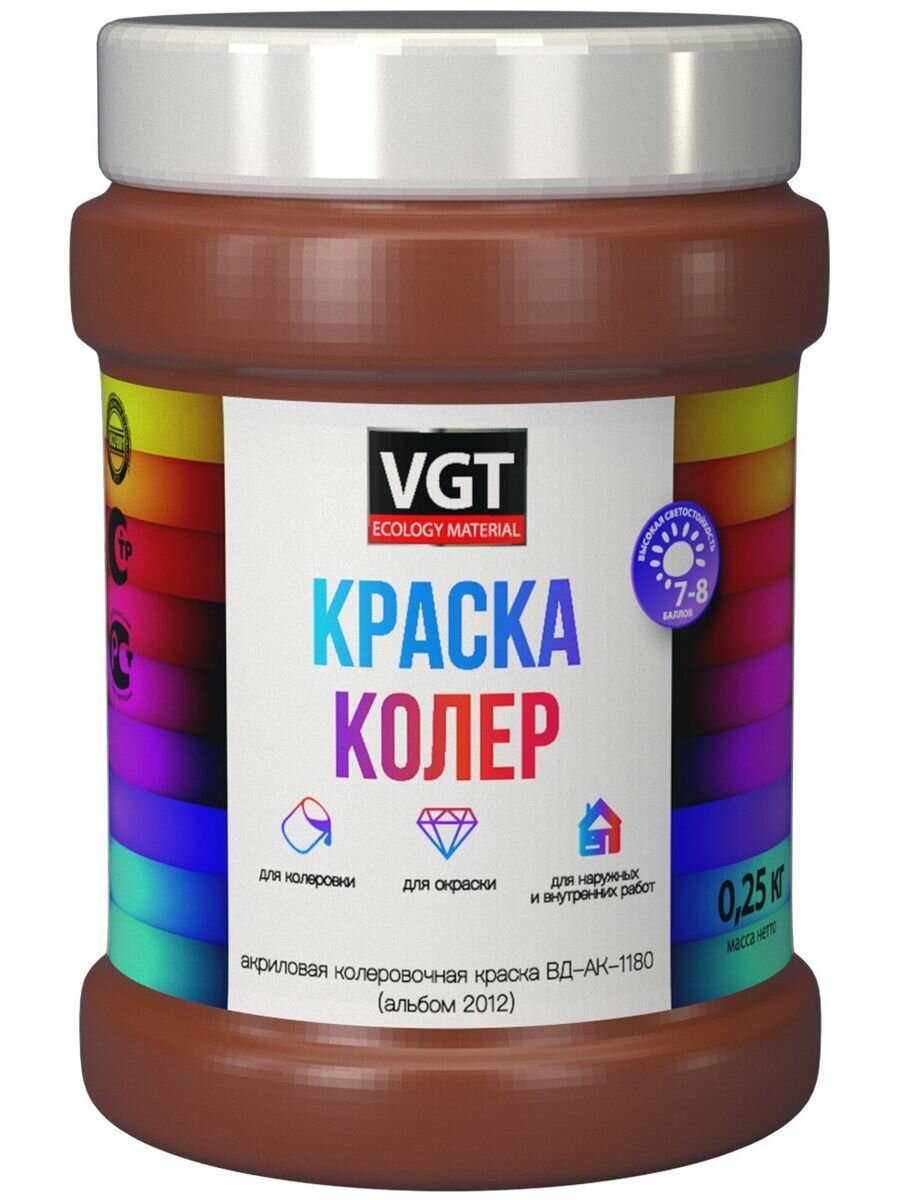 VGT краска колеровочная для водно-дисперсионных красок альбом 2012, кирпично-красная (1кг)