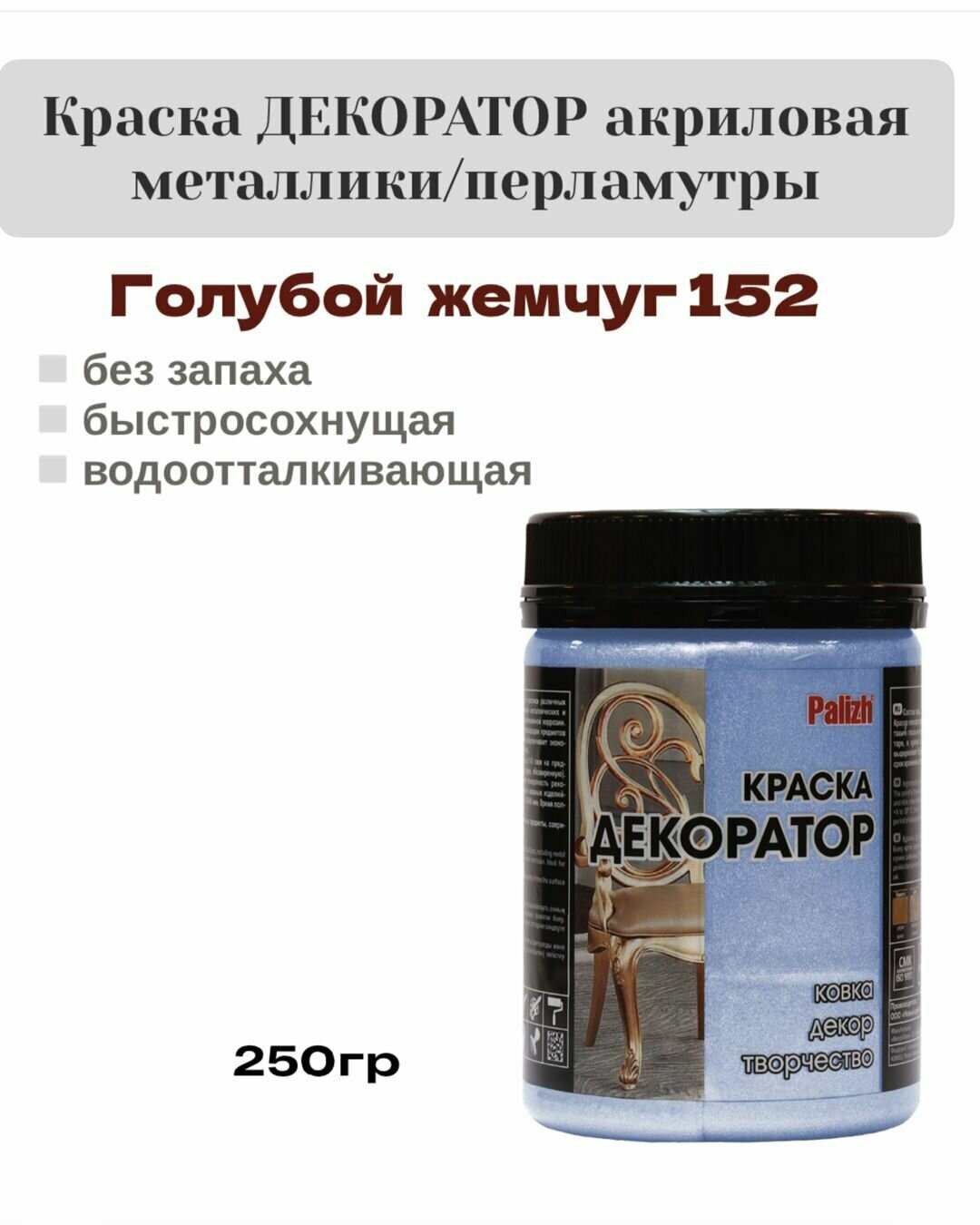 СохранитьКраска Декоратор акриловая быстросохнущая Palizh перламутр Голубой жемчуг 0,25кг интересное: