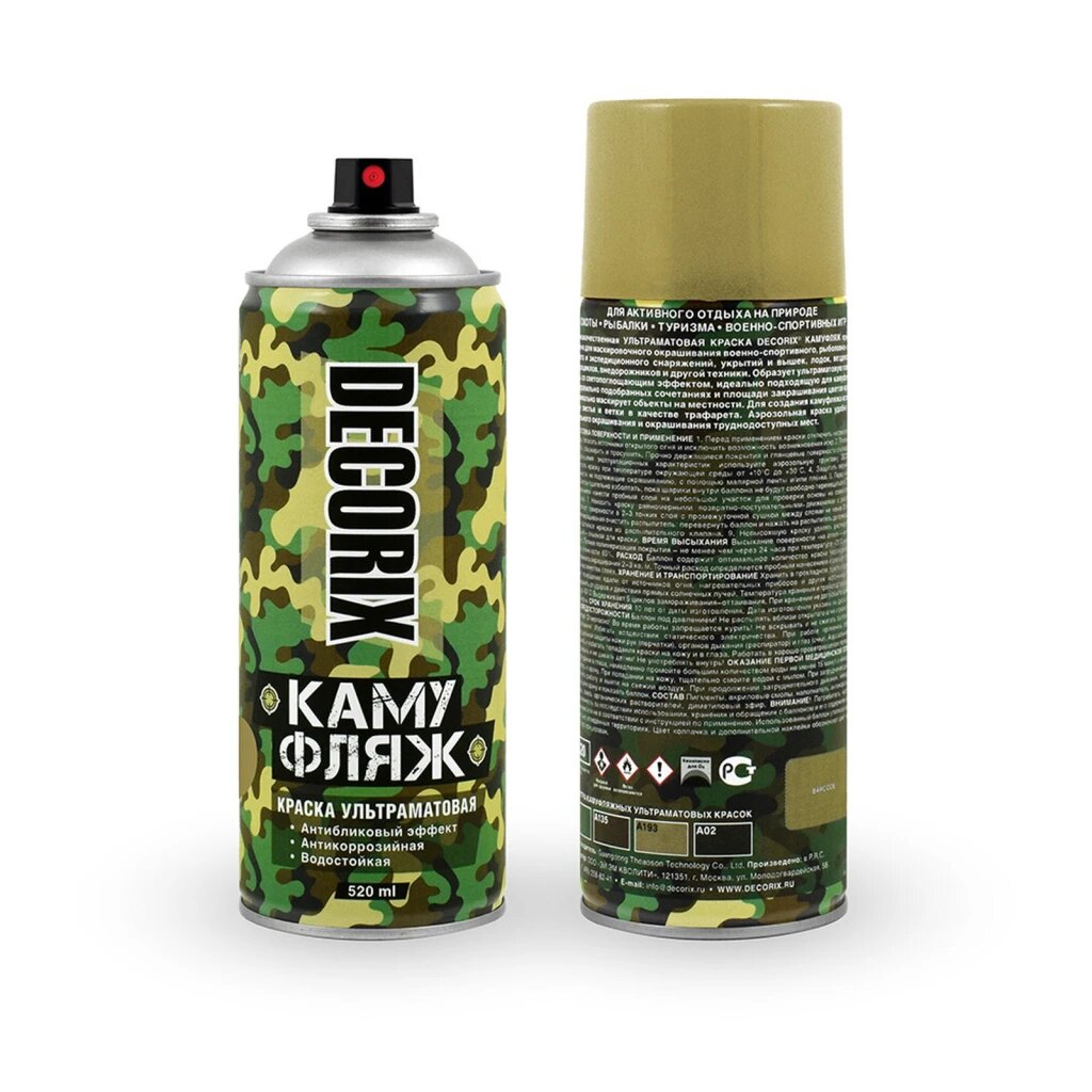 СохранитьDECORIX 014493DX 0144-93 DX DECORIX Краска камуфяж CAMOUFLAGE хаки камуфяж матовый 520 м аэрозоь интересное: