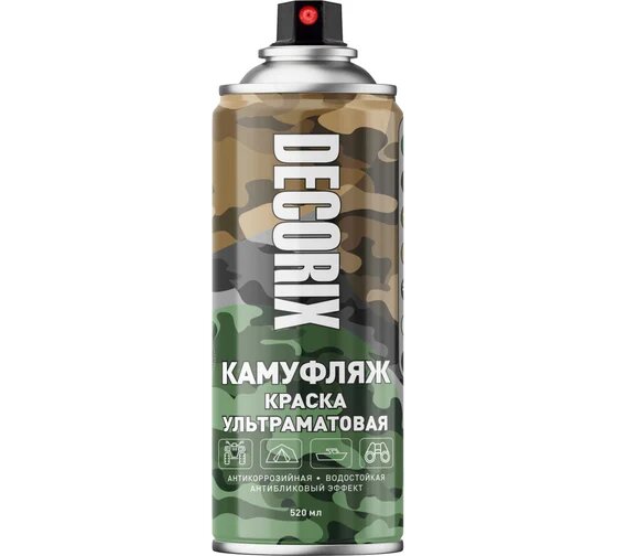 Decorix Аэрозольная краска камуфляж (зелёный камуфляжный, матовый, 520 мл)