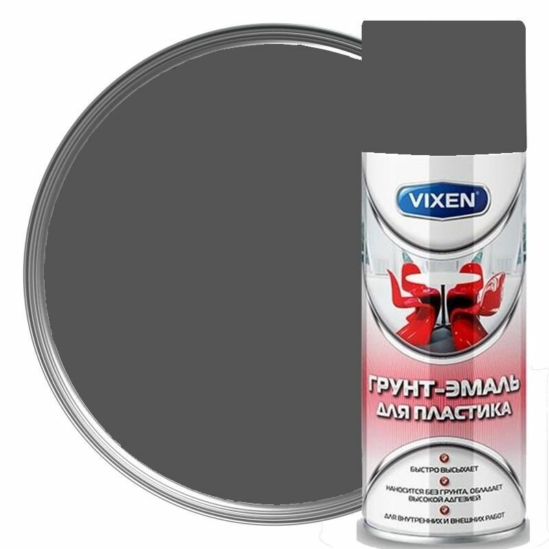VIXEN VX50101 Грунтэмаль для пластика, графит матовый (RAL 7024), аэрозоль 520 мл VIXEN VX50101