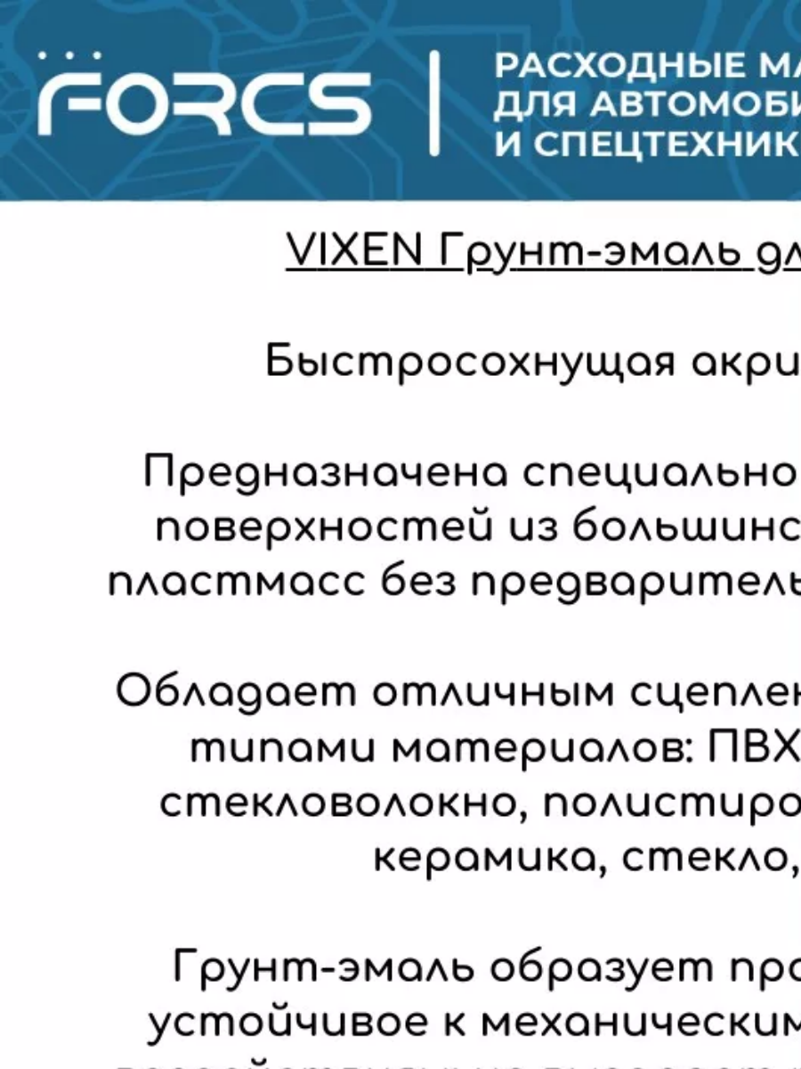 | Дополнительная информация | Грунт-эмаль для пластика Vixen-9005, 520 мл |