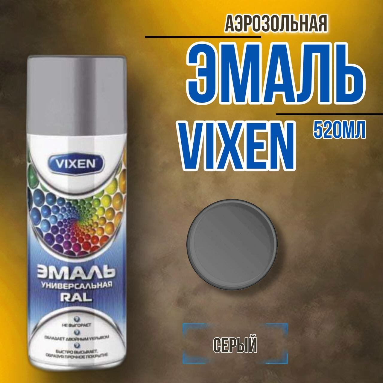 Грунт-эмаль для пластика, серый матовый, аэрозоль VX-50102 520мл, VX50102 VIXEN VX-50102