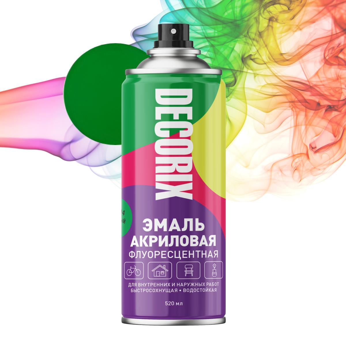 Купить Аэрозольная краска эмаль флуоресцентная зеленая 520 мл