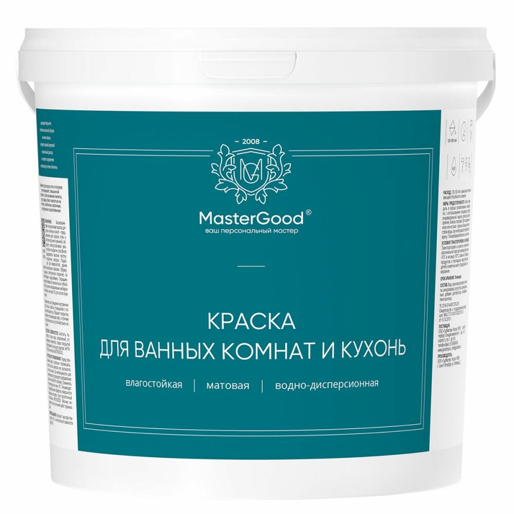 Краска для ванных комнат и кухонь MasterGood (1,5 кг) / Для окраски стен и потолков в кухне и в ванной