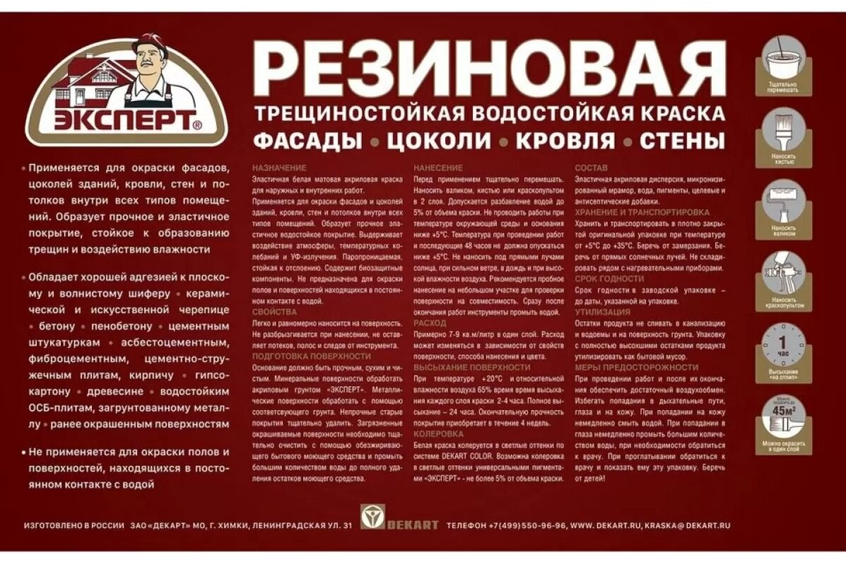 Ниже Вы можете прочитать отзывы на Краска эксперт резиновая, эластичная, База А,белый, 9л, ознакомится с подробными характеристиками, посмотреть интересные обзоры и фотографии на Краска эксперт резиновая, эластичная, База А,белый, 9л.