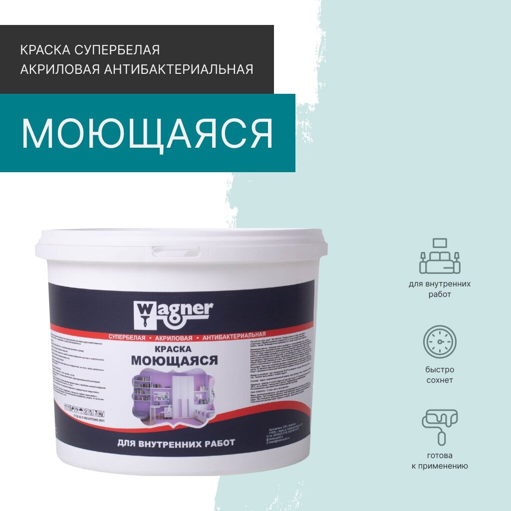 Краска акриловая Wagner Интерьерная моющаяся 5 кг интересное: