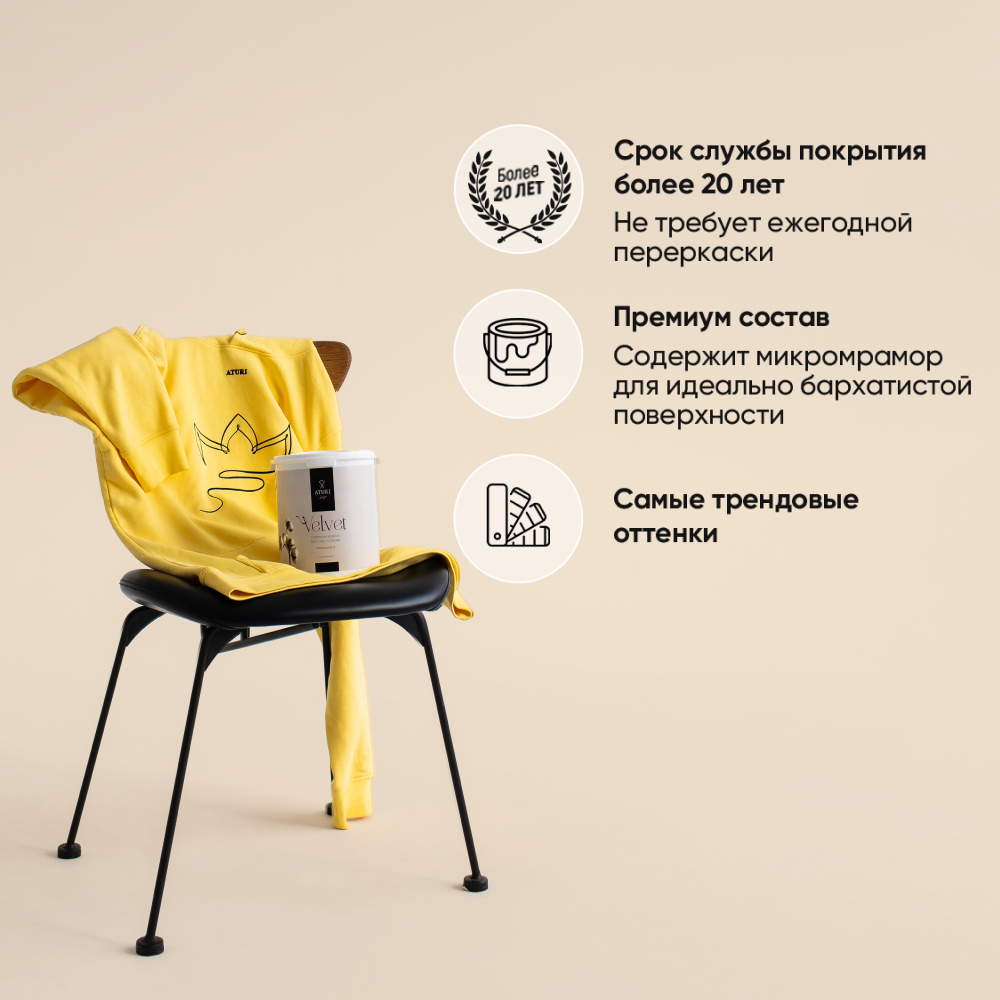 Краска интерьерная для стен и обоев Aturi Design Velvet цвет: Деликатный кашемир 3,5 кг. Матовая, моющаяся