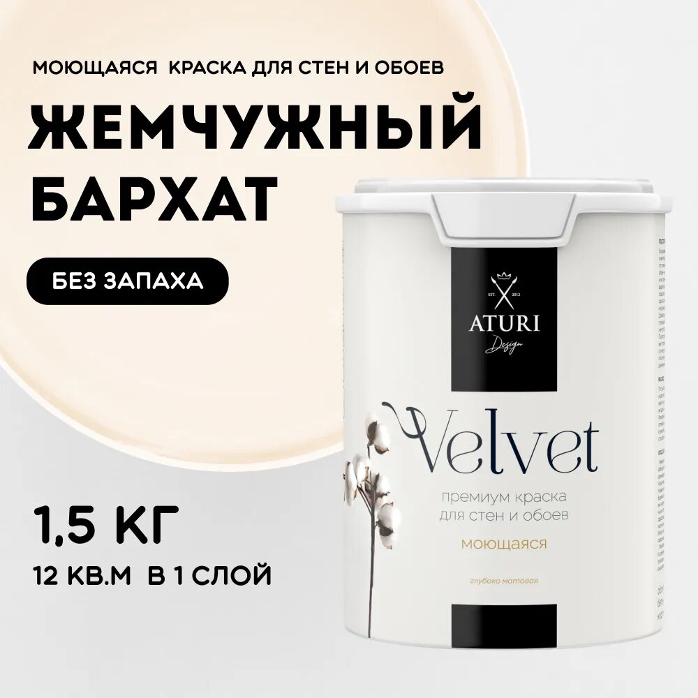 Купить Краска для стен моющаяся Aturi Design для обоев интерьерная, для потолка, без запаха быстросохнущая, водоэмульсионная акриловая матовая; Цвет: Жемчужный бархат, бежевая 1,5 кг
