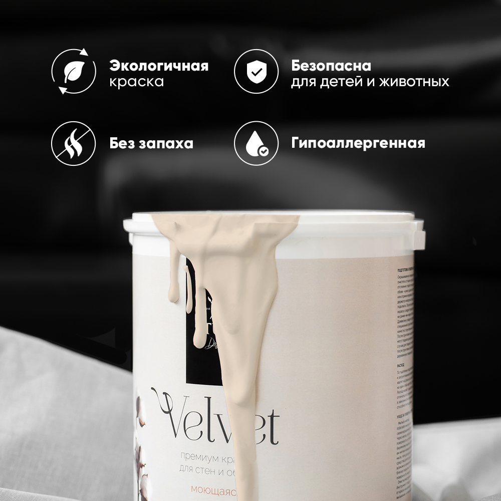 Краска интерьерная для стен и обоев Aturi Design Velvet цвет: Деликатный кашемир 1,4 кг. Матовая, моющаяся