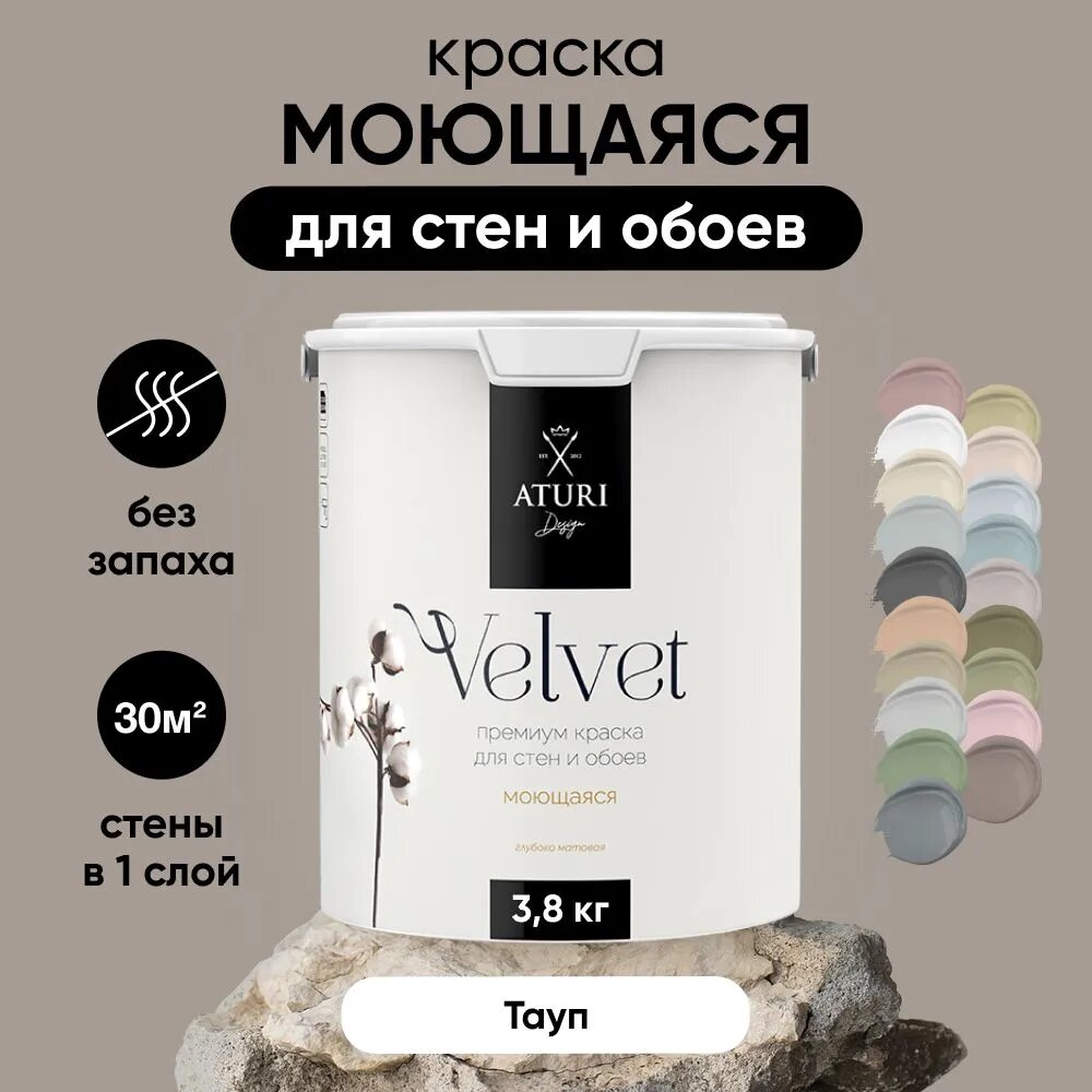 Краска для стен и обоев Aturi Design Velvet Цвет: Тауп, серо-коричневый, 3,5 кг. Интерьерная, матовая, без запаха
