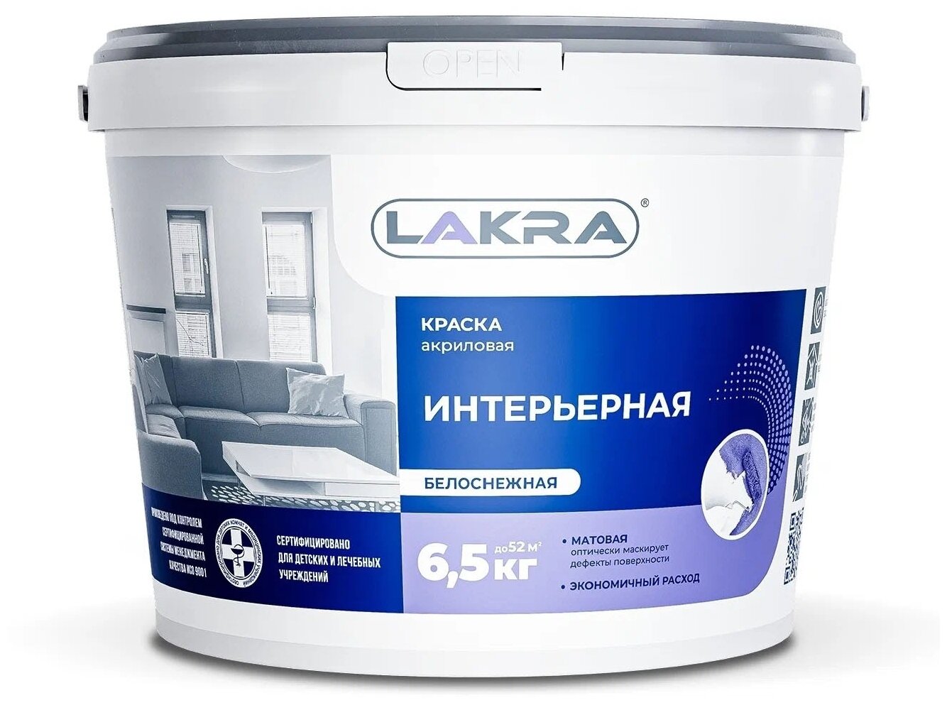 Краска акриловая интерьерная лакра белоснежная 6,5 кг