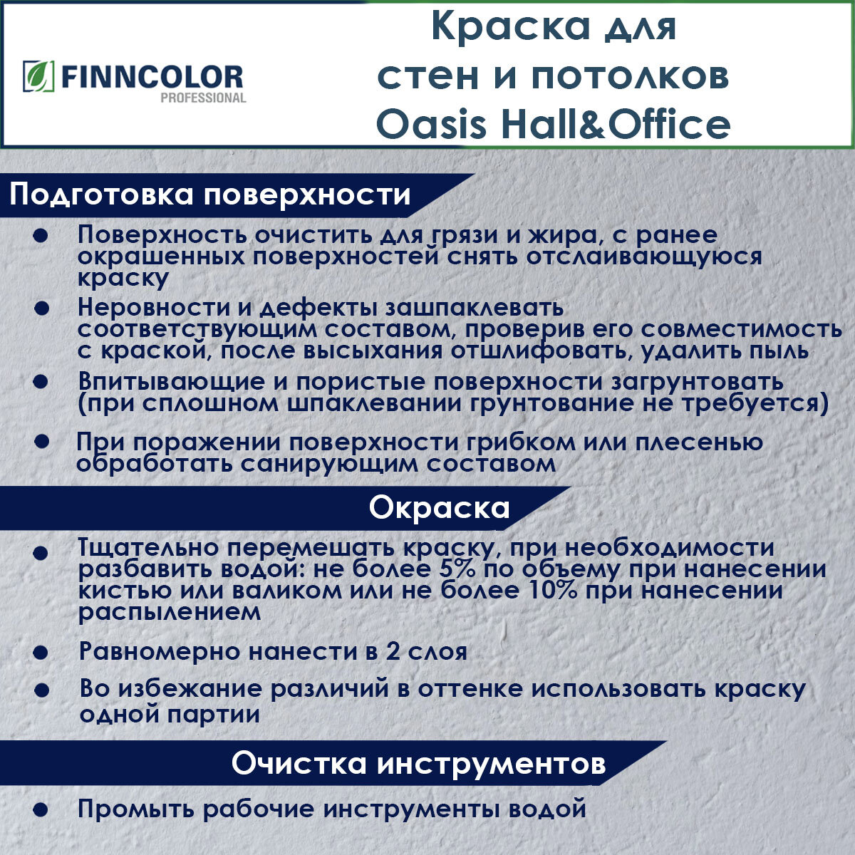 Finncolor Oasis Hall&Office моющаяся краска для стен и потолков (под колеровку, матовая, база C, 0,9 л)