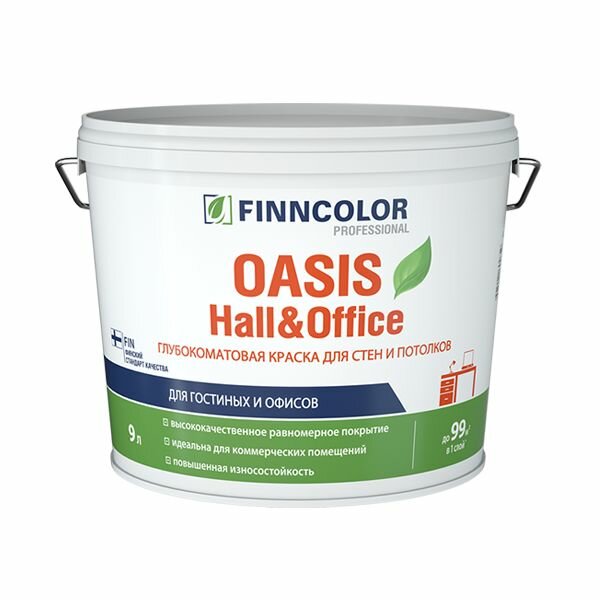 Краска FINNCOLOR OASIS HALL&OFFICE для стен и потолков, моющаяся, глубокоматовая, база С 9л