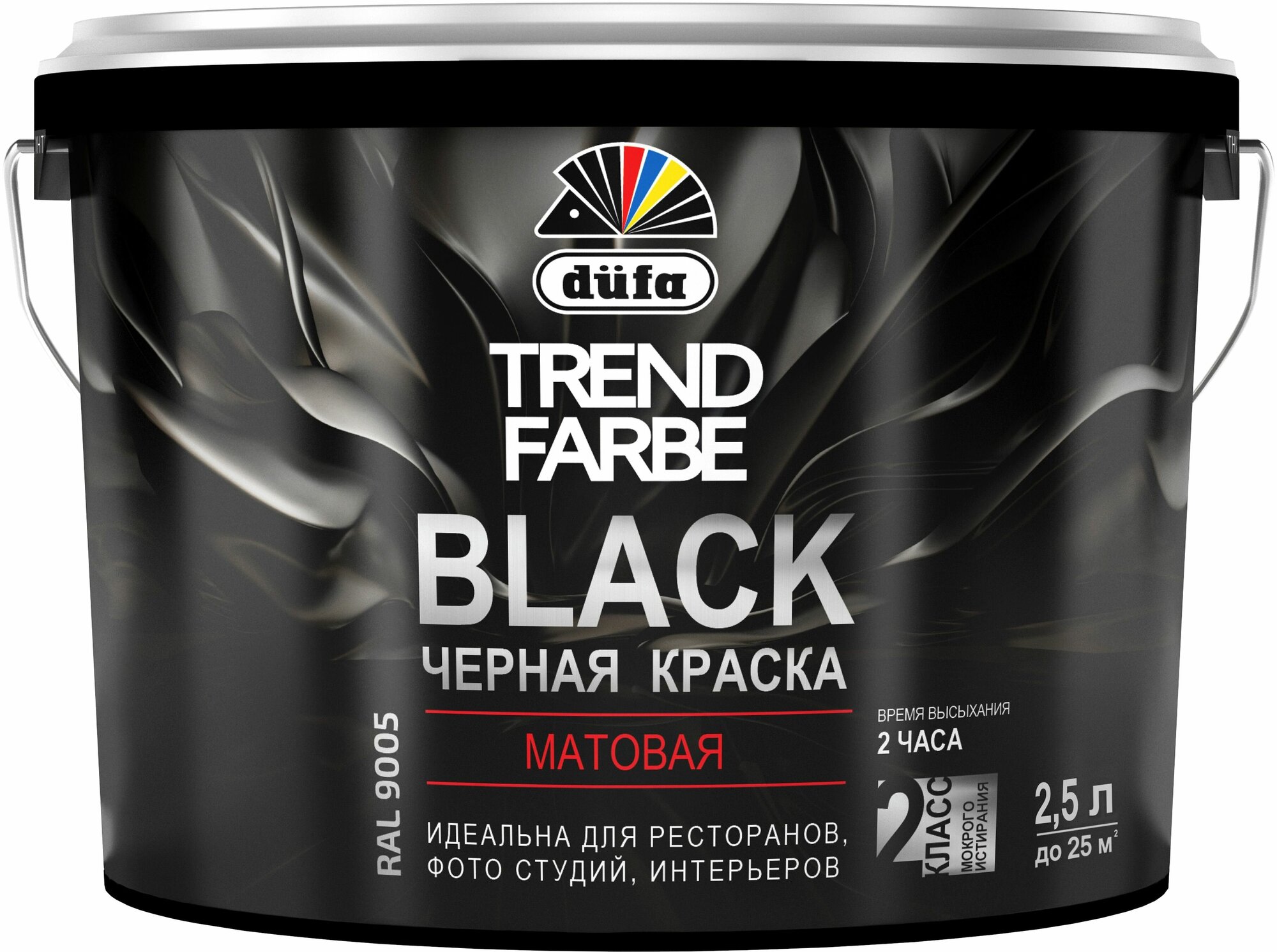 Dufa Trend Farbe Black Краска для стен и потолков водно-дисперсионная (черная, матовая, 2,5 л)