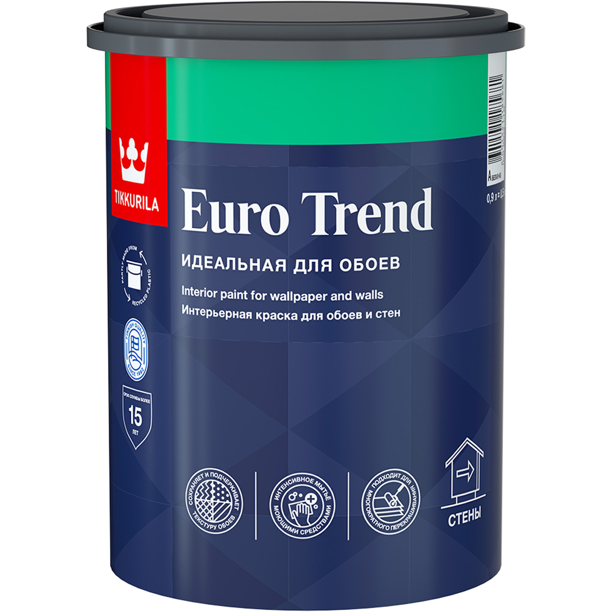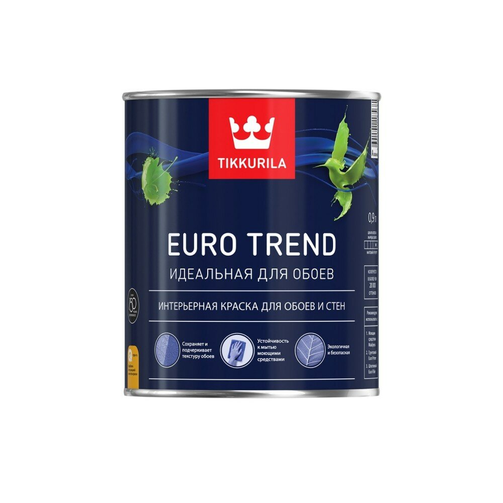 TIKKURILA EURO TREND краска интерьерная для обоев и стен, база A (0,9л)