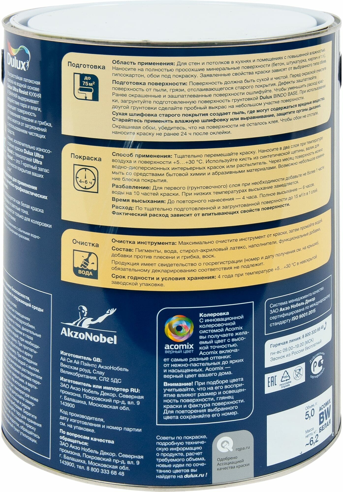 Краска Dulux Ultra Resist Кухня и Ванная для стен и потолков база BW матовая 5 л