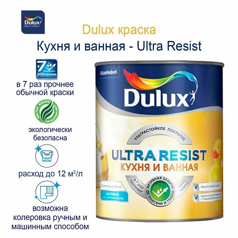 Краска Dulux Ultra Resist "Кухня и ванная" BW, 1л