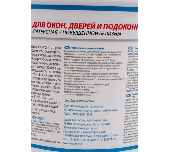 Новбытхим краска БЕЛАЯ латексная для окон, дверей, подоконников 1,0 КГ 1096