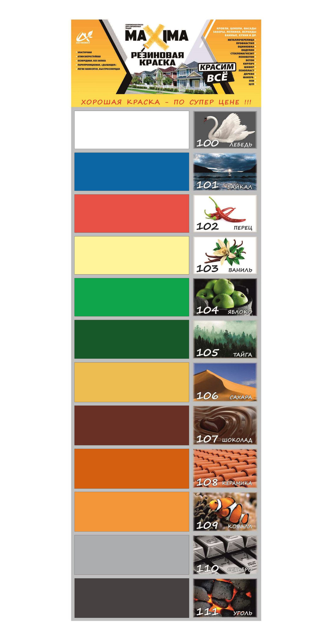 | Цвет товара | 100 лебедь, 101 байкал, 102 перец, 103 ваниль, 104 яблоко, 105 тайга, 106 сахара, 107 шоколад, 108 керамика, 109 коралл, 109 коралл, 110 серебро, 111 Уголь, 112 Аттика |