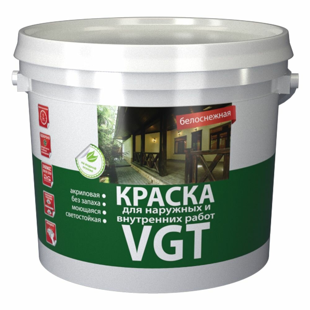Краска VGT для наружных и внутренних работ, краска акриловая, белоснежная 3 кг