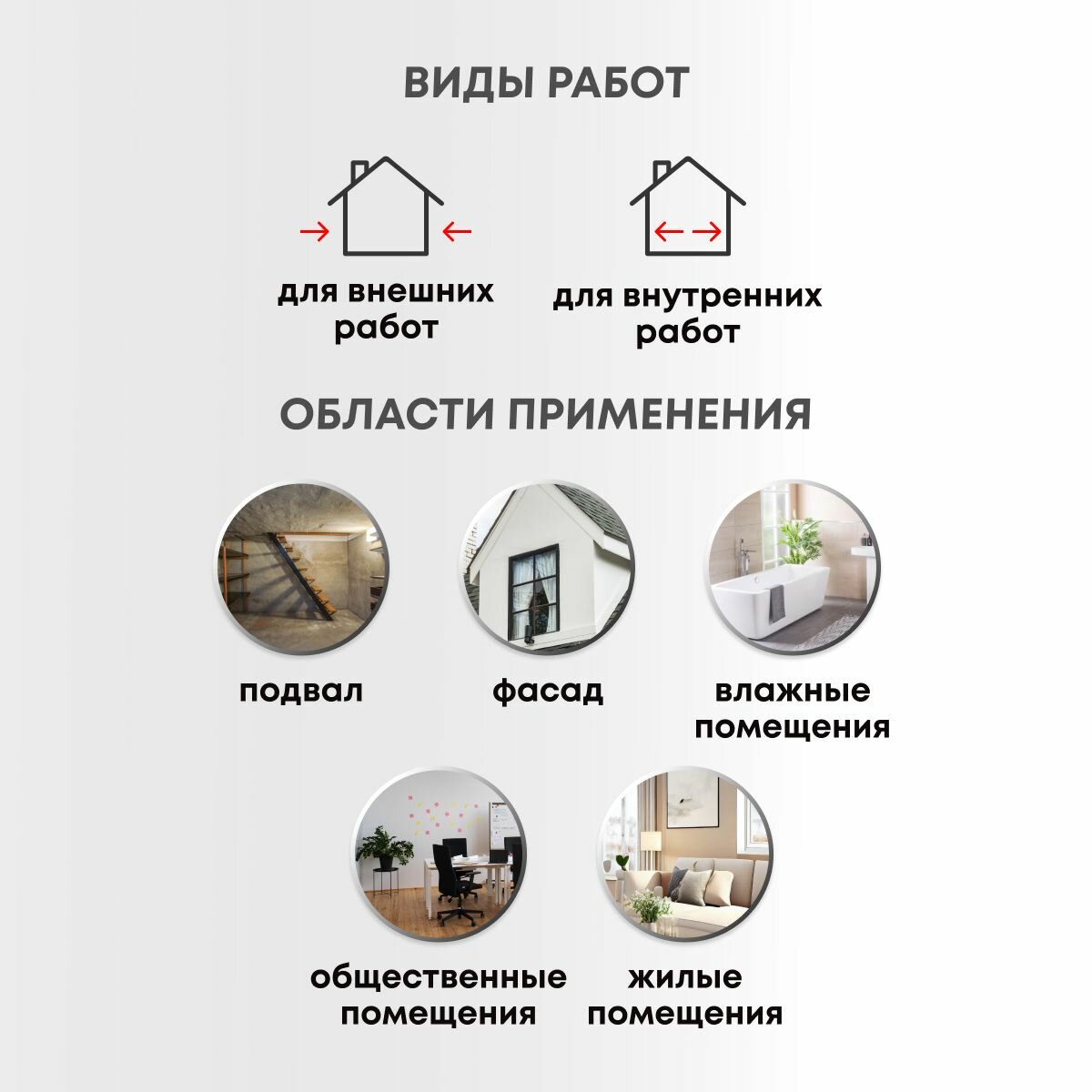 | Область применения | для влажных помещений / для гаражей / для дверей / для кровли / для обоев / для окон / для потолков / для стен / для фасадов / универсальная |