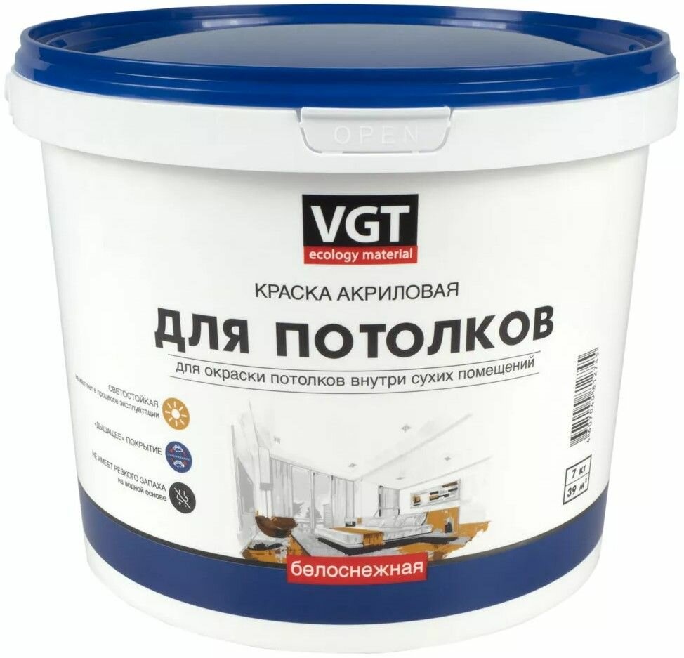 VGT ВД-АК-2180 краска для потолков акриловая, белоснежная, матовая (7кг)