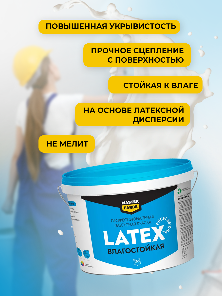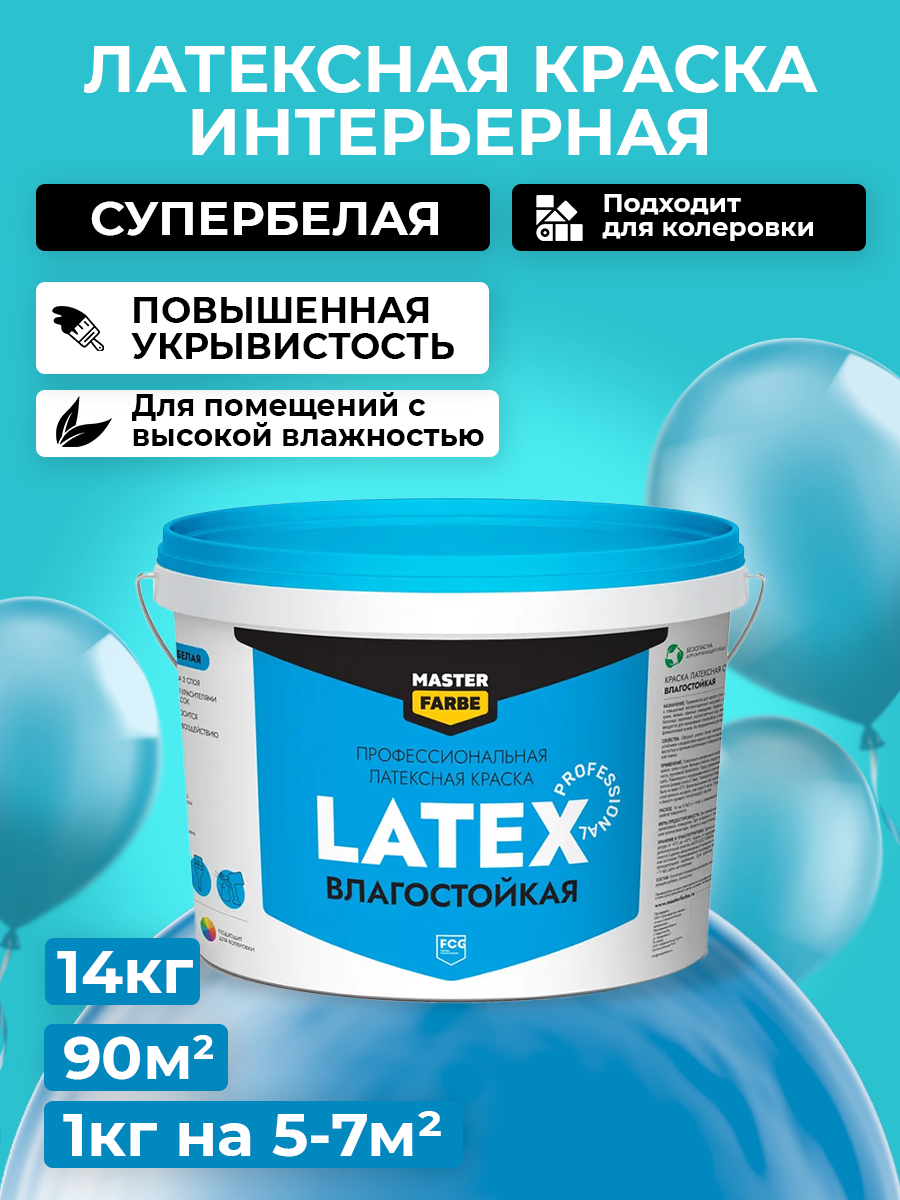 Краска латексная для стен и потолков MASTER FARBE PROLATEX ВД, влагостойкая, 14 кг