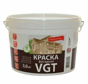 Купить Краска Фасадная VGT ВД-АК-1180 3кг Долговечная, Белоснежная, Акриловая, Матовая / ВГТ Фасадная.