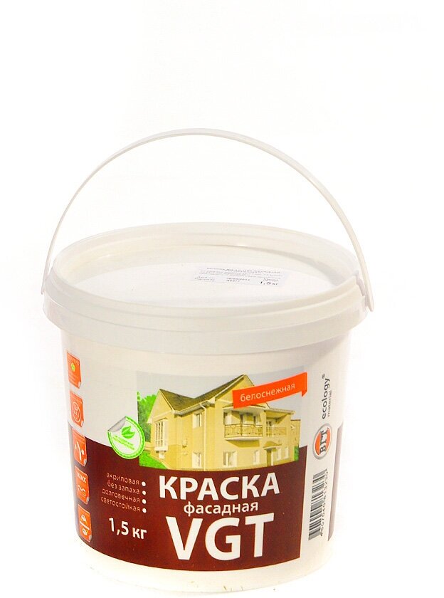Краска VGT фасадная Белоснежная, ВД-АК-1180, 1,5 кг.