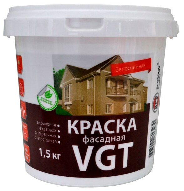 Краска фасадная VGT ВД-АК-1180, белоснежная, 1,5 кг