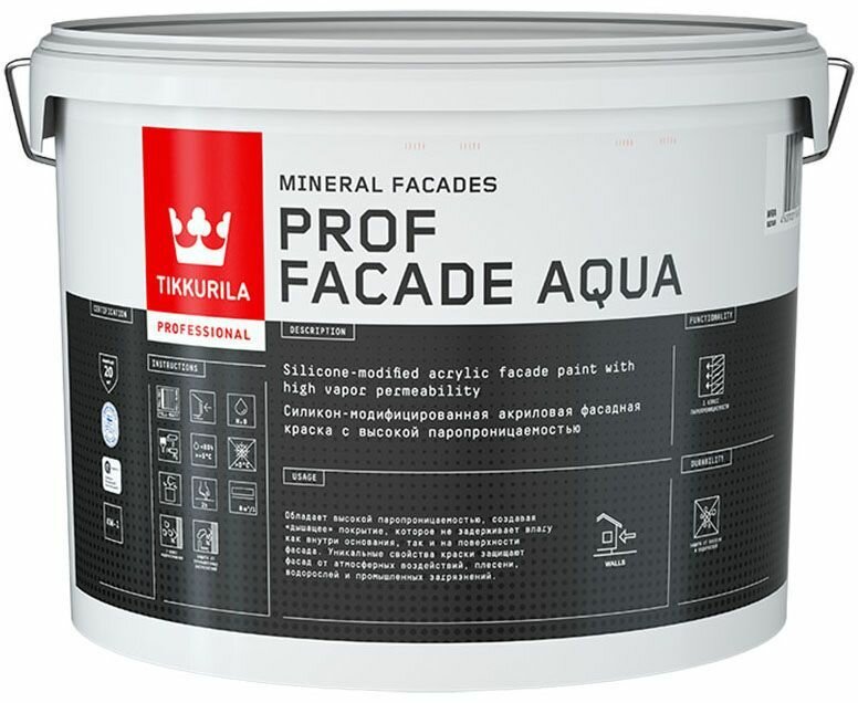Тиккурила Проф Фасад Аква база MRА силиконовая фасадная краска (9л) / TIKKURILA Prof Facade Aqua base MRА силикон-модифицированная фасадная краска (9л