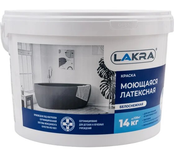 Краска моющаяся латексная Лакра белоснежная 14кг