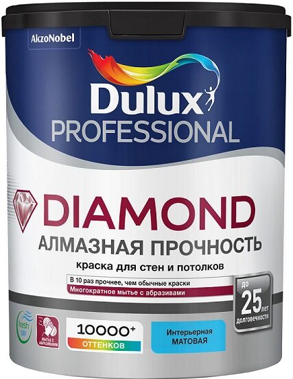 Краска DULUX DIAMOND алмазная прочность для стен и потолков, износостойкая, матовая, бесцветная, BC 4,5л