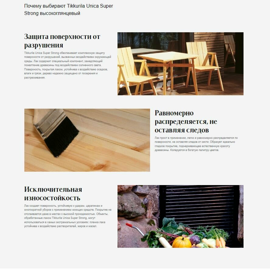 | Дополнительная информация | TIKKURILA UNICA SUPER STRONG EP лак универсальный износостойкий, высокоглянцевый (0,9л) |