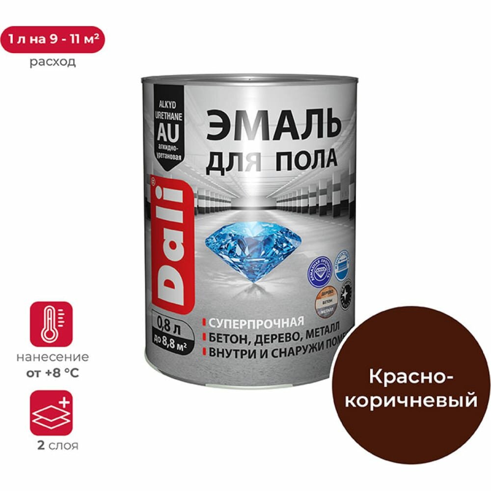 Эмаль для пола Dali, алкидно-уретановая, глянцевая, красно-коричневая, 0,8 л