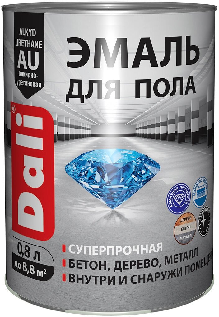 Эмаль для пола Dali, алкидно-уретановая, глянцевая, серая, 0,8 л