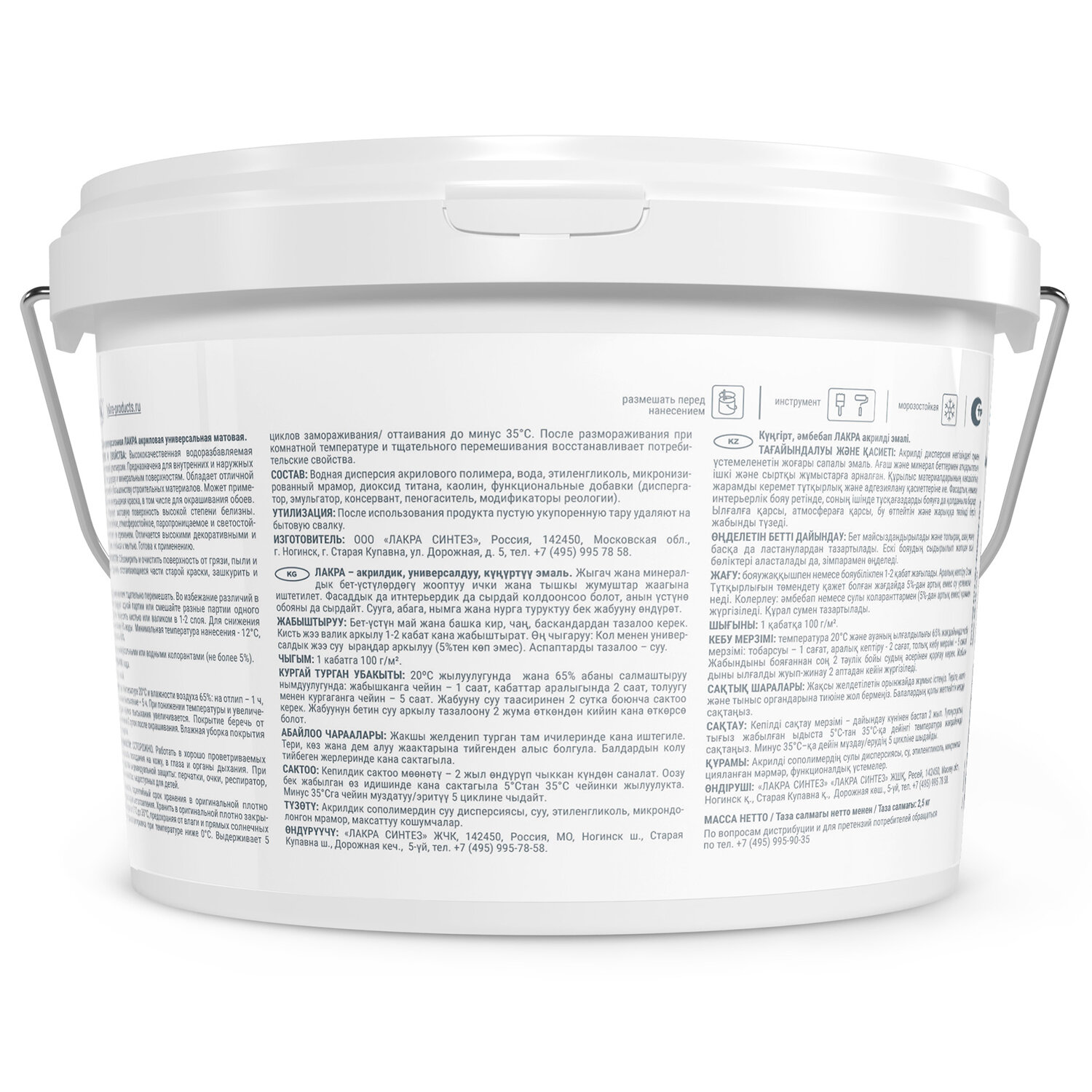 эмаль акриловая лакра универсальная матовая белая 2,5кг, арт.0008108