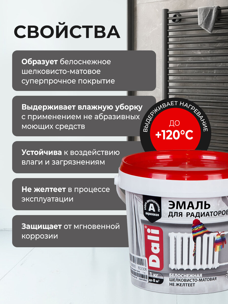 DALI / дали эмаль для радиаторов акриловая антикоррозионная шелковисто-матовая белый 1 кг интересное: